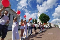 У гістарычным цэнтры Віцебску людзі сталі ў ланцуг салідарнасьці