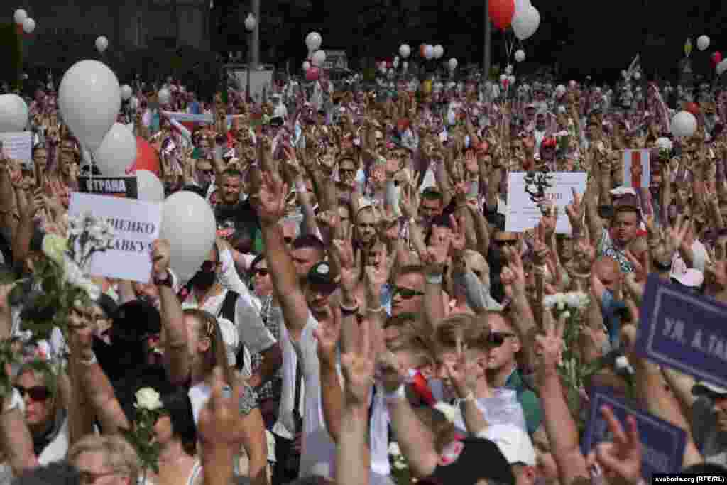 У Горадні на плошчы Леніна сабралася каля 10 тысяч чалавек з нацыянальнымі сьцягамі, балёнкамі, надпісамі «Лукашэнку ў адстаўку». Пачынаецца мітынг. Людзі скандуюць «Лукашэнка, сыходзь».