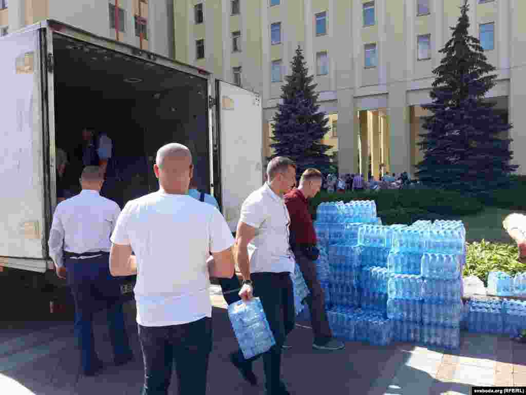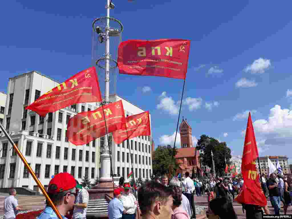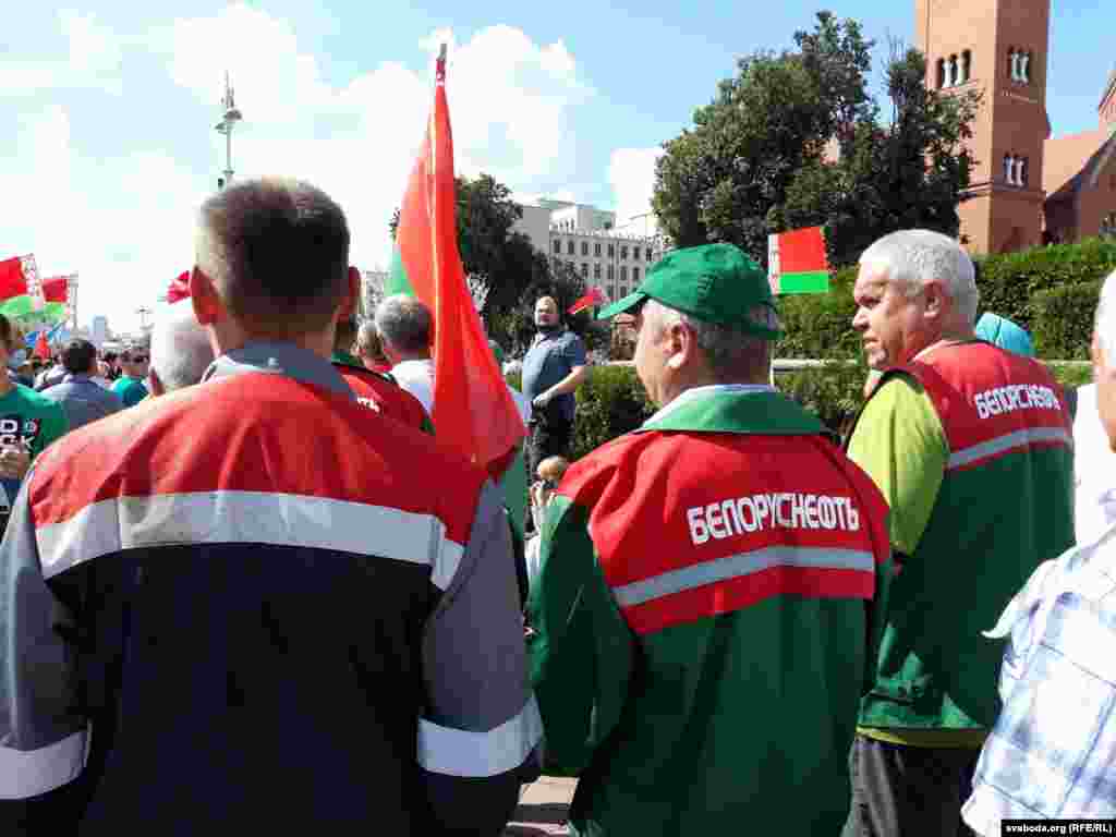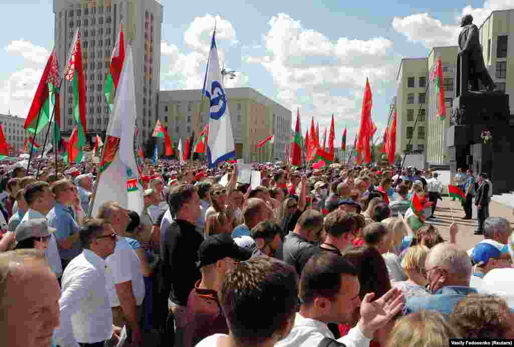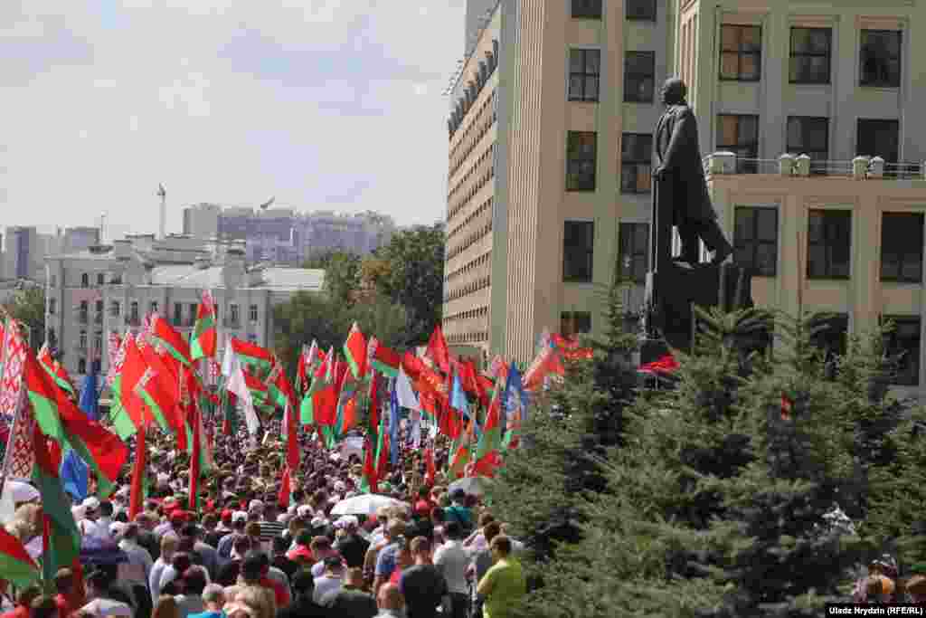 На плошчы Незалежнасьці ў Менску некалькі сотняў чалавек, якія прыбылі на мітынг у падтрымку Аляксандра Лукашэнкі. Дзясяткі аўтобусаў з розных абласьцей стаяць у прылеглых вуліцах.