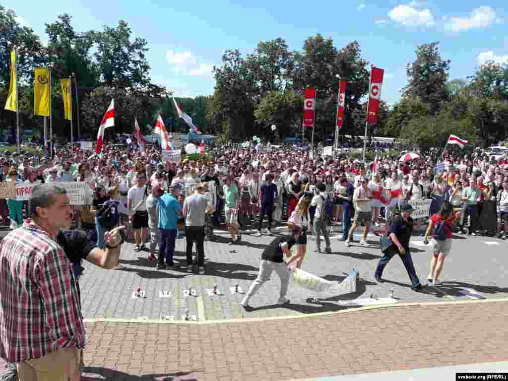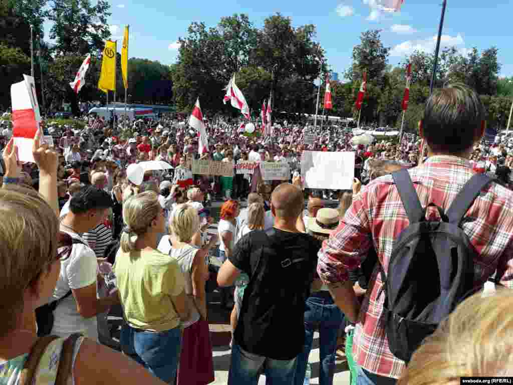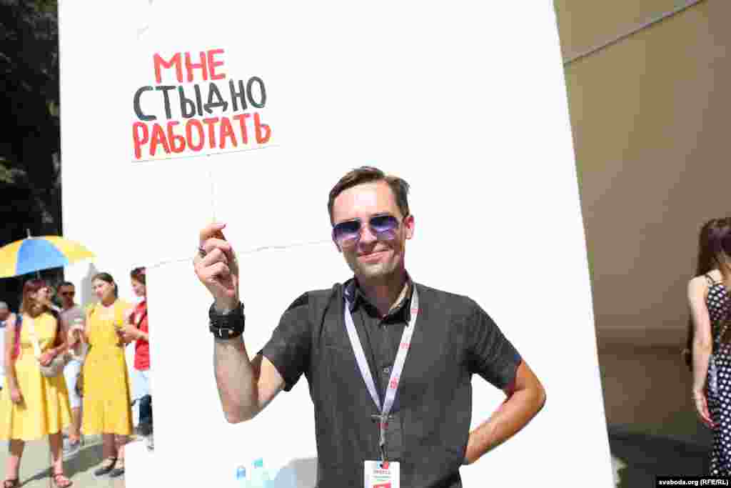 «Але сёньня нас спачатку было 30 чалавек, колькі цяпер, я ня ведаю. Нас пачалі звальняць. У суботу мне пазваніў кіраўнік і сказаў, што я звольненая і мяне ня пусьцяць. Гэта гвалт над нашай пазыцыяй, гвалт з нас. Ёсьць тыя, хто звыкся і ня хоча нічога мяняць. Што будзе з тымі, хто застаўся, я ня ведаю. Калі нас будзе выходзіць больш, то цалкам магчыма, што выйдуць усе».
