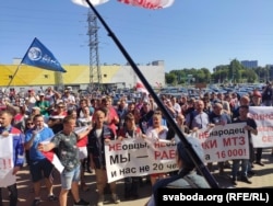 Каля Менскага заводу шасьцерняў да пратэстоўцаў ніхто не далучыўся. «Людзі яшчэ баяцца. Напэўна, іх не выпускаюць», — сказаў адзін з удзельнікаў пратэсту, рабочы МАЗу.