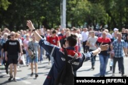 Тысячы рабочых менскіх заводаў у падтрымку агульнанацыянальнага страйку ідуць да будынку Белтэлерадыёкампаніі на вуліцы Макаёнка падтрымаць забастоўку тэлевізійнікаў.