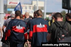 Далей шэсьце рушыла да Менскага аўтазаводу, дзе ў яго ўліліся сотні рабочых.