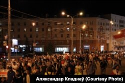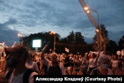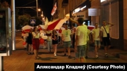 На другім традыцыйна ўжо была моладзь зь бел-чырвона-белымі сьцягамі. Выгукалі «Лукашэнку ў аўтазак!», «Верым, можам, пераможам» і «Жыве Беларусь».