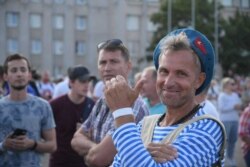 «Давайце паслухаем мяне! Толькі што сказалі, што народ Беларусі запалохваць, падыміце рукі, каму пагражалі звальненьнем», – кажа ён. Людзі Крычаць у адказ «Верым! Можам! Пераможам!» і «Сыходзь!»