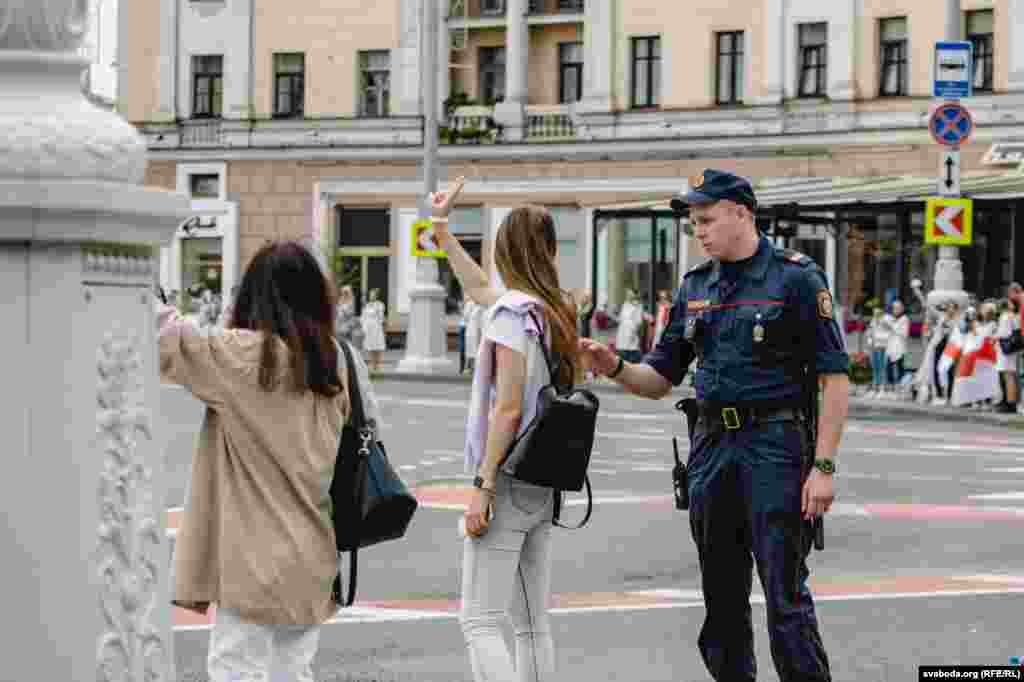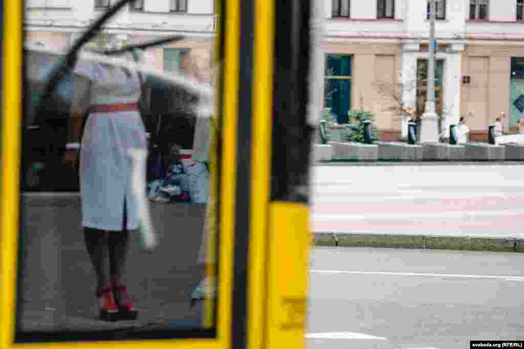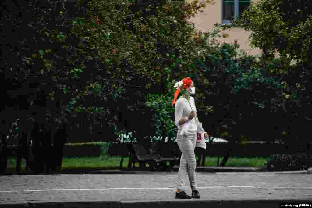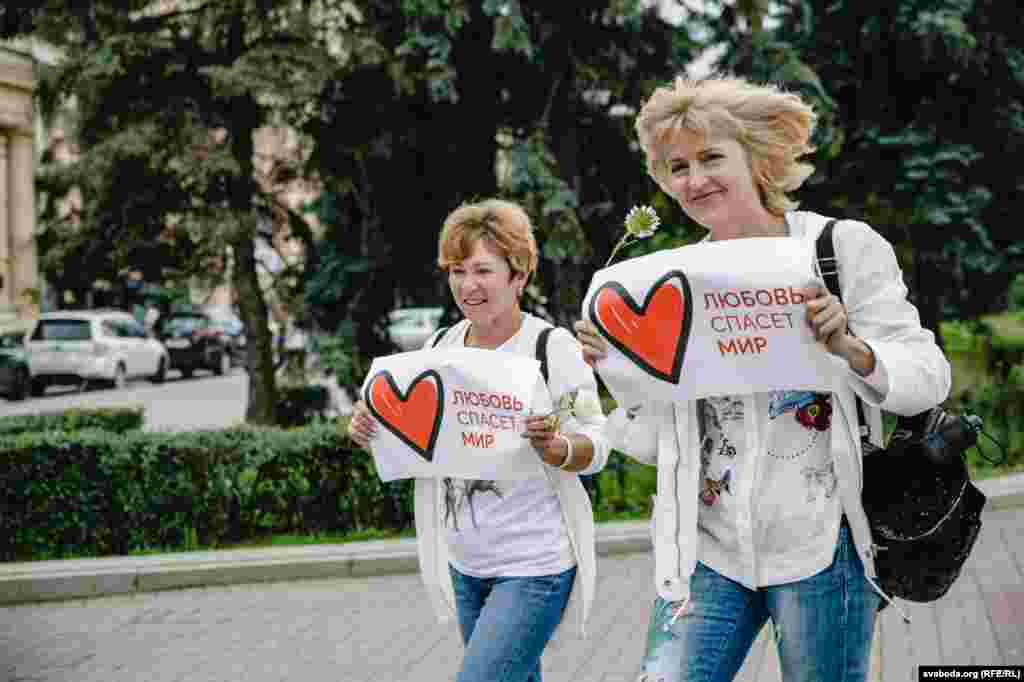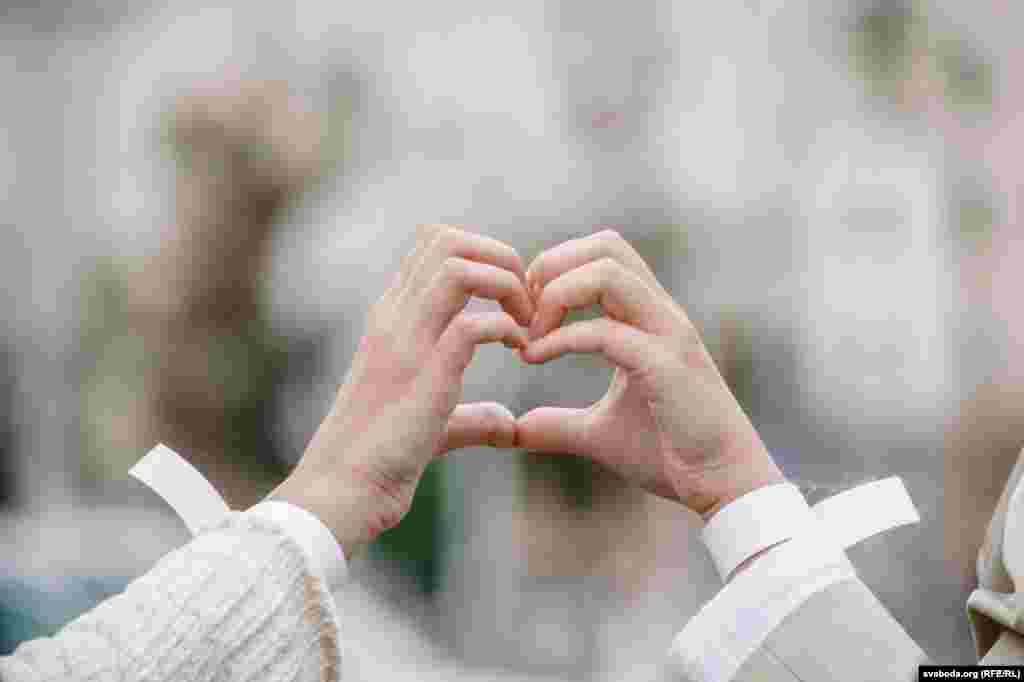 Людзі сталі ў «ланцуг салідарнасьці» на плошчы Перамогі ў Менску. Фотарэпартаж