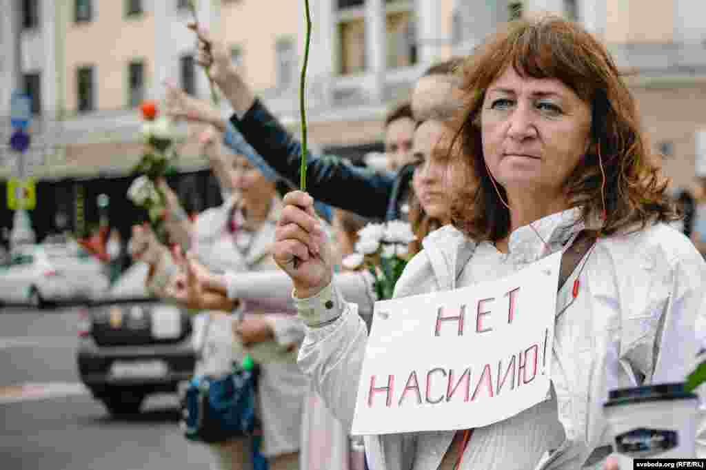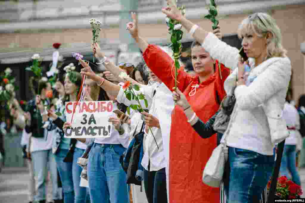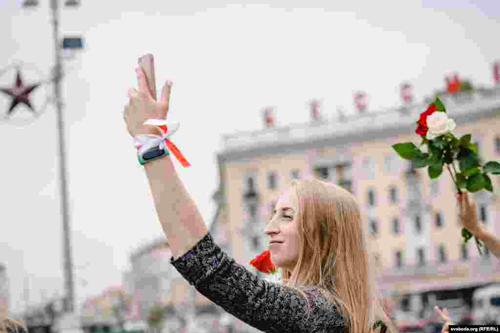 20 жніўня на плошчы Перамогі ў Менску прайшла акцыя салідарнасьці. Людзі 12-ы дзень выходзяць на пратэсты супраць фальсыфікацыі выбараў і гвалту сілавікоў.