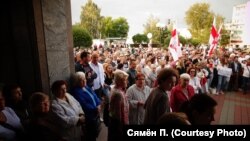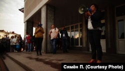 Да прысутных выйшла старшыня гарвыканкаму Сьвятлана Карташова і агучыла ўмову: размова адбудзецца толькі ў актавай залі ДК. Прысутныя адмовіліся і арганізавалі выступленьні ўсіх, хто жадаў, на ганку ўстановы. У часе мітынгу музыка Зьміцер Сасноўскі выканаў жалобны твор у памяць забітага падчас пратэсту ў Менску Аляксандра Тарайкоўскага.