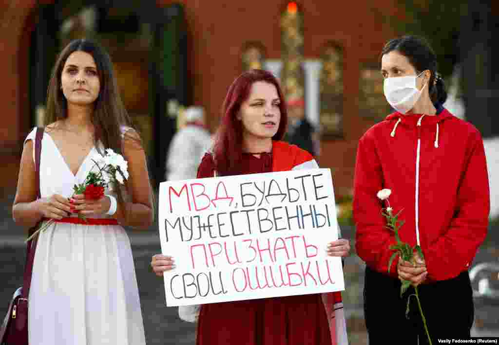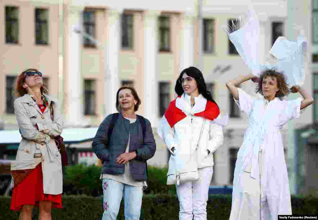 28 жніўня на плошчы Незалежнасьці ў Менску зноў сабраліся пратэстоўцы. На пляцоўцы перад Чырвоным касьцёлам дзяўчаты ў белым сталі ў «ланцуг салідарнасьці». Хутка на плошчы зьявіліся аўтазакі і АМАП.