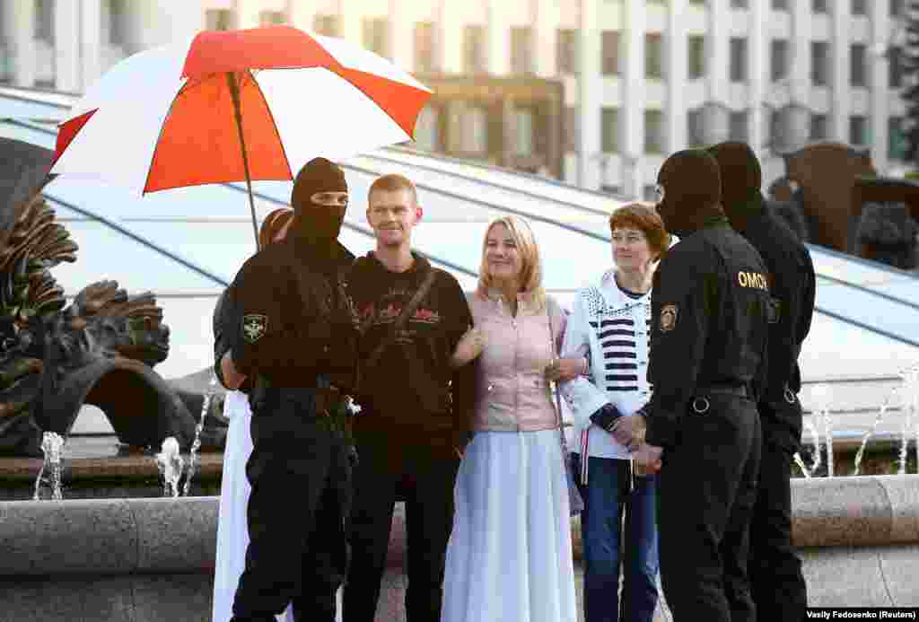 АМАП атачыў людзей і ўзяў іх у кола, пачаў затрымліваць хлапцоў. Дзяўчатам сілавікі празь нейкі час далі магчымасьць пакінуць плошчу калёнай. Дзяўчаты, сыходзячы, махалі амапаўцам рукамі і букетамі. Яны пайшлі калёнай па праспэкце Незалежнасьці.