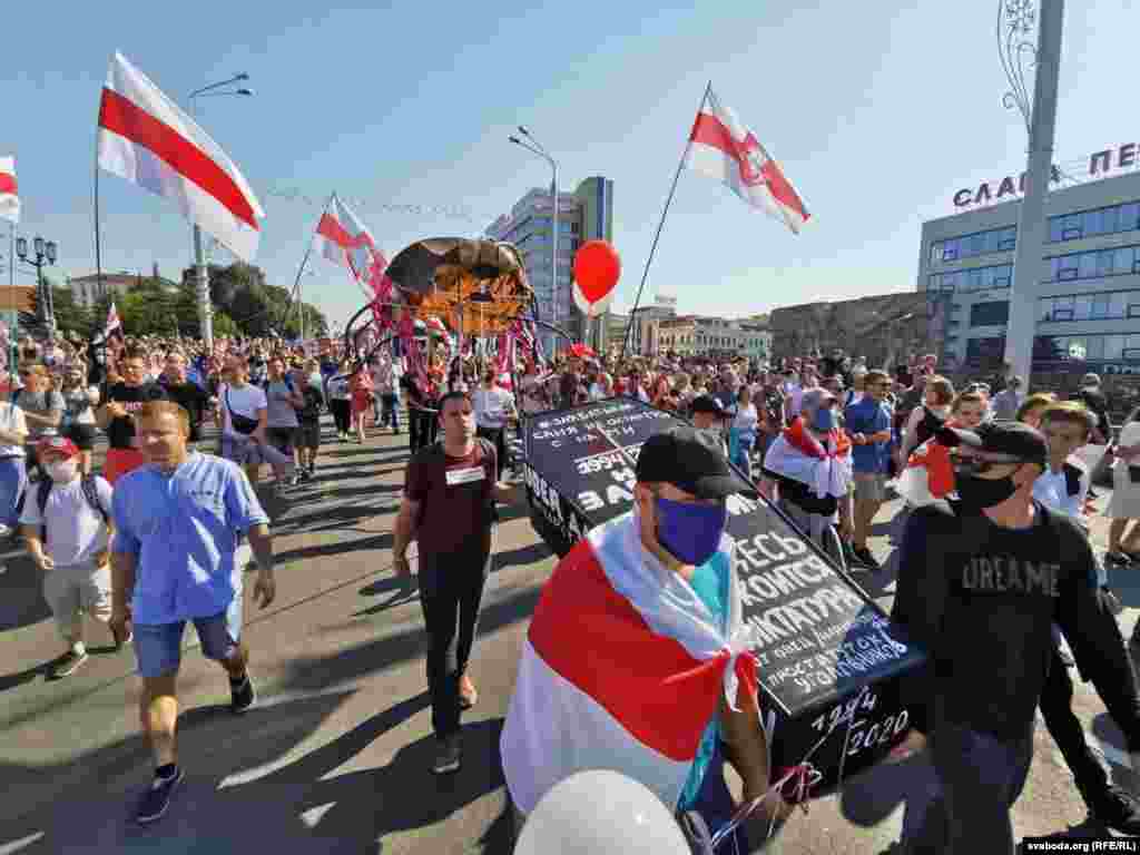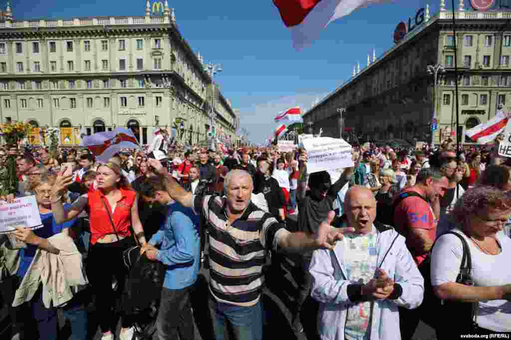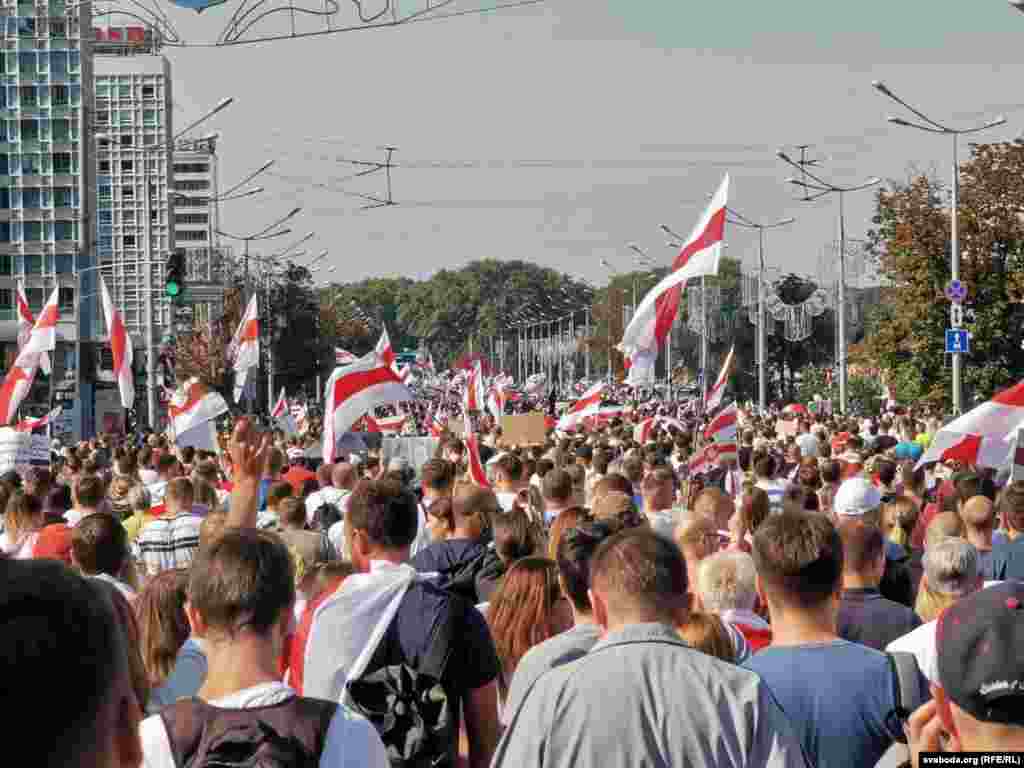 Маштабная акцыя пратэсту праходзіла трэцюю нядзелю запар. Па розных ацэнках, у ёй узялі ўдзел некалькі соцень тысяч чалавек. Калёна дайшла да Палацу Незалежнасьці, дзе яе сустрэў кардон сілавікоў з спэцтэхнікай. Сутыкненьняў не было.