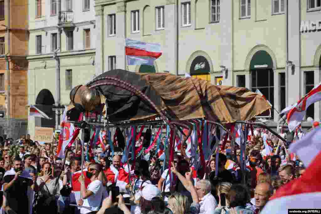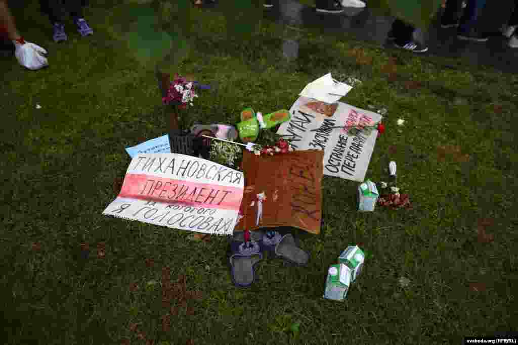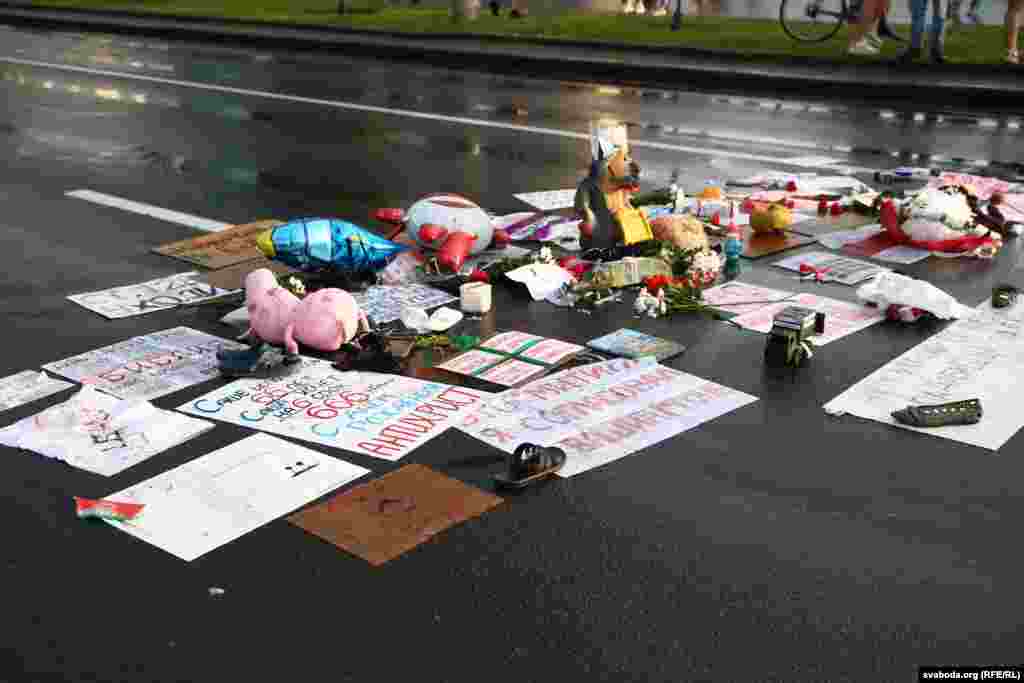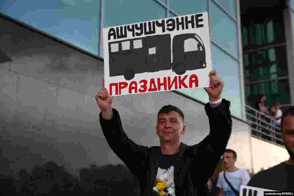 Многія пратэстоўцы прыйшлі з плякатамі і прадметамі пэрфомансу, у якіх абыгрывалі 66-ты дзень нараджэньня Аляксандра Лукашэнкі.