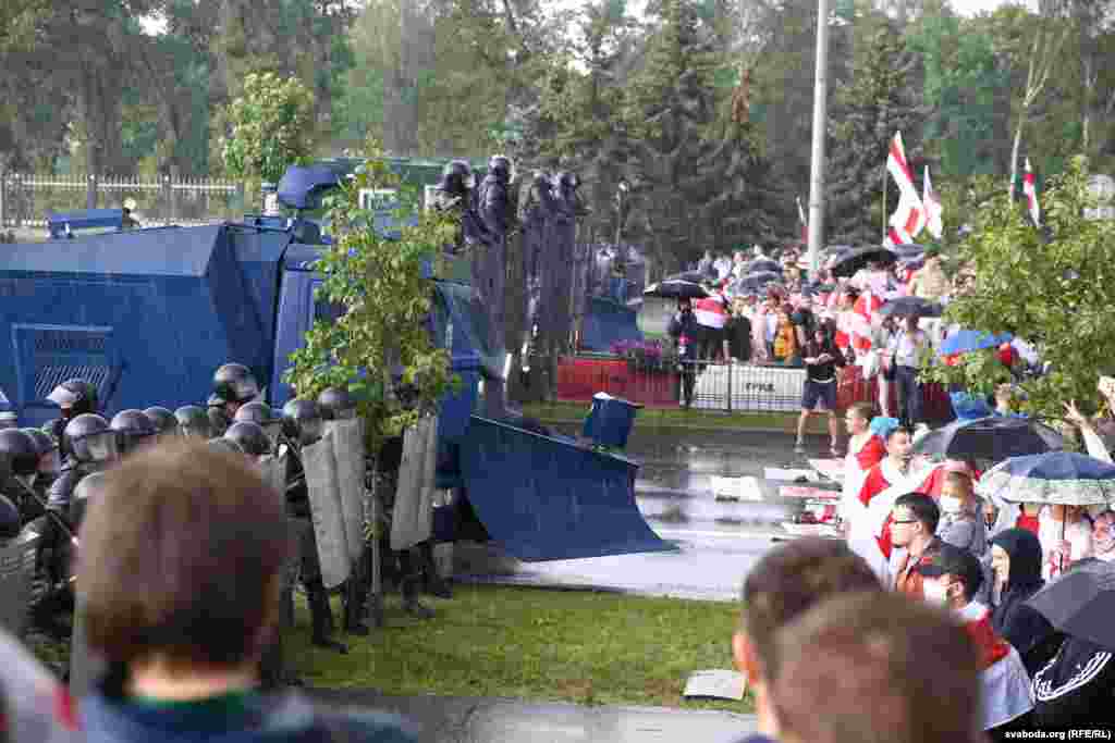 Многія ўдзельнікі маршу пачалі разыходзіцца з пачаткаму моцнага дажджу, які накрыў Менск.