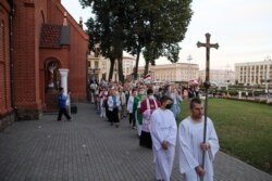 Падчас імшы ў Чырвоным касьцёле вернікі выйшлі на хросны ход, молячыся за арцыбіскупа Тадэвуша Кандрусевіча. Кіраўніка беларускага каталіцкага касьцёлу 31 жніўня не пусьцілі з Польшчы ў Беларусь. Да хроснага ходу далучыліся некалькі дзясяткаў пратэстоўцаў, якія прыйшлі на плошчу Незалежнасьці. Увесь гэты час міліцыянты прасілі пратэстоўцаў разысьціся. На плошчы Незалежнасьці быў АМАП, стаялі ня менш як пяць аўтазакаў і некалькі міліцэйскіх мікрааўтобусаў.