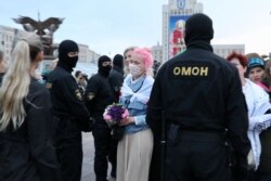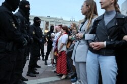 Калі на плошчы зьявіліся амапаўцы ў чорнай форме, жанчыны сталі ў счэпку, каб ня даць затрымаць мужчын. Амапаўцы падыйшлі да жанчын з ланцуга салідарнасьці, размаўляюць. Пакуль нікога не затрымалі.