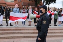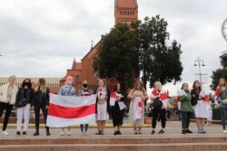 Увечары ля Чырвонага касьцёла жанчыны зноў сабраліся ў «ланцуг салідарнасьці». Міліцыя папярэджвае іх праз мэгафон, што акцыя не санкцыянаваная ўладамі, і просіць разысьціся. Жанчыны працягваюць стаяць.