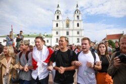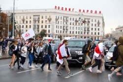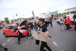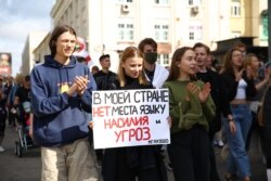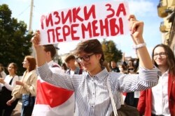 12:57 Навуковыя супрацоўнікі БДУ сказалі, што выйшлі на марш, каб падтрымаць студэнтаў. Яны кажуць, што сьвяткуюць дзень ведаў. «Маладыя больш рашучыя, мне здаецца, што гэта генэтычнае пачуцьцё страху», — сказала жанчына.