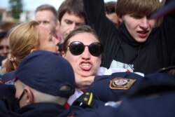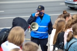 Перад затрыманьнямі АМАП у балаклавах і міліцыянты ў масках падышлі да калёны студэнтаў і папрасілі іх разысьціся. Студэнты казалі міліцыянтам, што яны гуляюць.