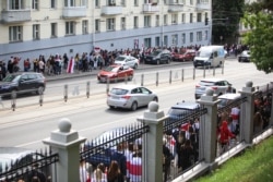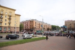 14:15 Калёна ідзе па вуліцах Першамайскай і Захарава ў бок стадыёну «Дынама», перадае карэспандэнт Свабоды.