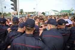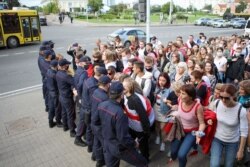 12:00 Калёну студэнтаў БДУ выцесьнілі да корпусу юрыдычнага факультэту. АМАП заблякаваў галоўны корпус БДУ, піша тэлеграм-канал «отчислено».