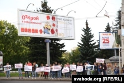 50 чалавек з плякатамі сталі на скрыжаваньні вуліц Гарадзкі Вал і Нямігі.