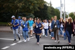 Пасьля журналісты рушылі праз цэнтар гораду да Міністэрства інфармацыі.