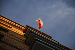 Так журналістаў віталі мясцовыя жыхары: з гаўбца аднаго з дамоў побач з РУУС нехта махаў ім бел-чырвона-белым сьцягам на знак салідарнасьці.