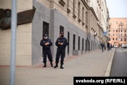Міліцыя папрасіла журналістаў сысьці з пляцоўкі насупраць міністэрства, паведаміўшы, што гэта «рэжымны аб’ект».