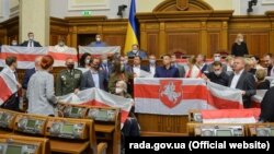 Пасяджэньне Вярхоўнай Рады Ўкраіны 4 верасьня пачалося з акцыі дэпутатаў у падтрымку грамадзян Беларусі, якія выйшлі на пратэсты супраць фальсыфікацыі выбараў і гвалту над удзельнікамі акцыяў.