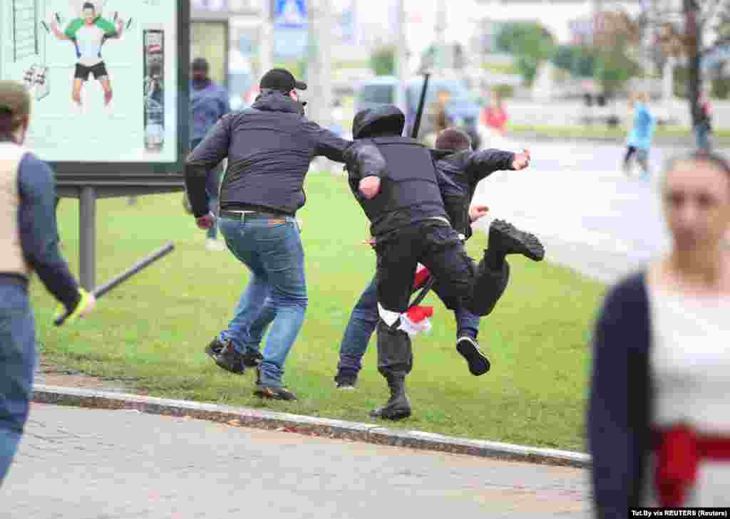 Яшчэ да пачатку акцыі сілавікі ачапілі калючым дротам стратэгічныя аб’екты — стэлу ля музэя гісторыі вайны і Палац Рэспублікі. Там стаяць вайскоўцы