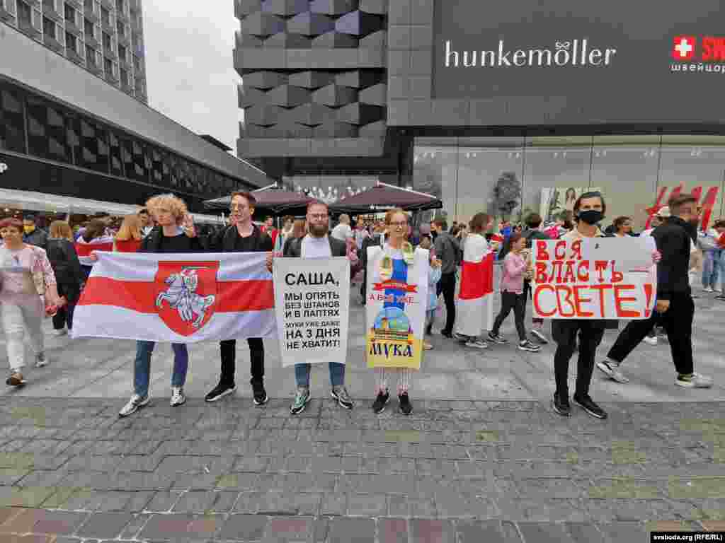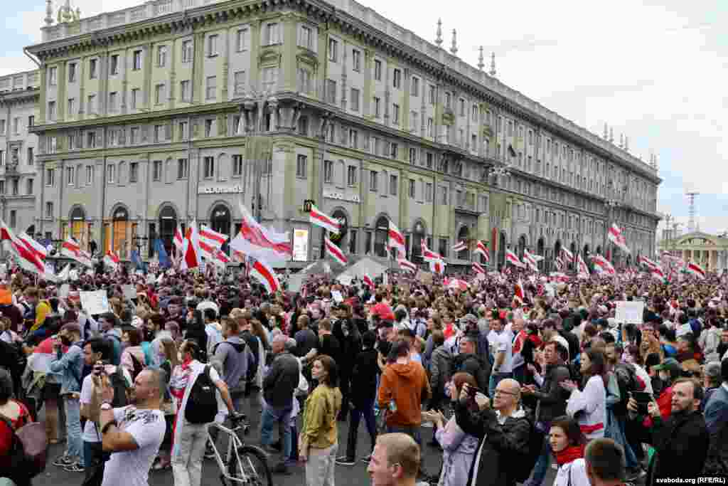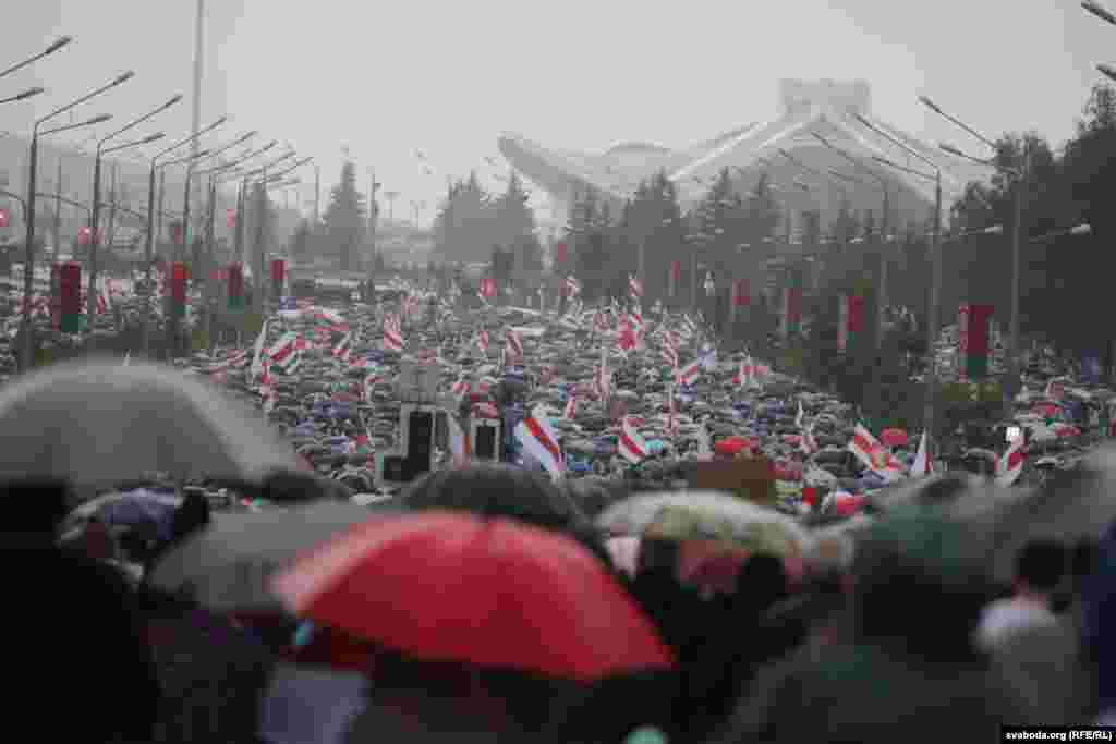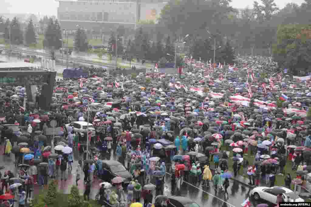 Калі пайшоў дождж, дэманстранты занялі ўсю паркоўку каля гатэлю «Вікторыя», якая знаходзіцца насупраць Палаца Незалежнасьці.