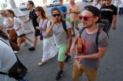 У бок міліцыі людзі крычалі: «Колькі каштуе сумленьне?». Завіталі жыхары Гомля на СІЗА, дзе скандавалі «Выпускай!», «Хопіць біць людзей!» і «Лукашэнка — тэрарыст».