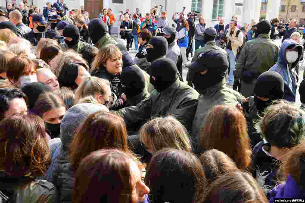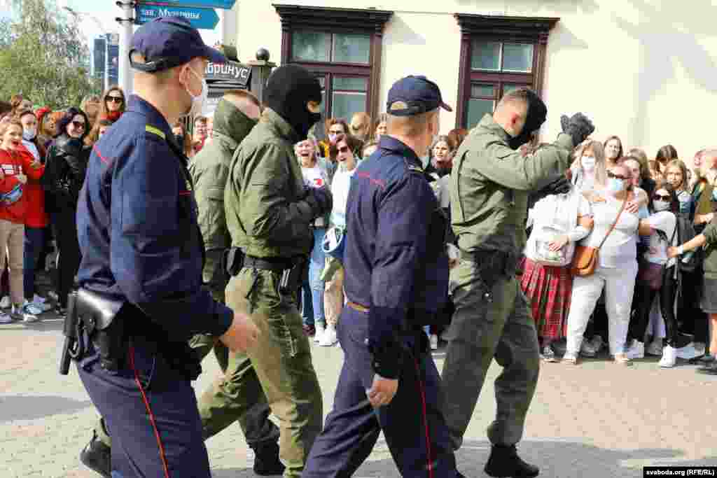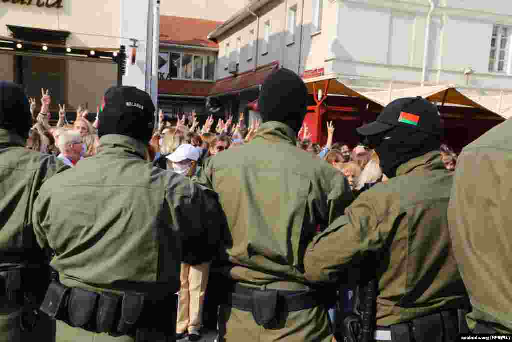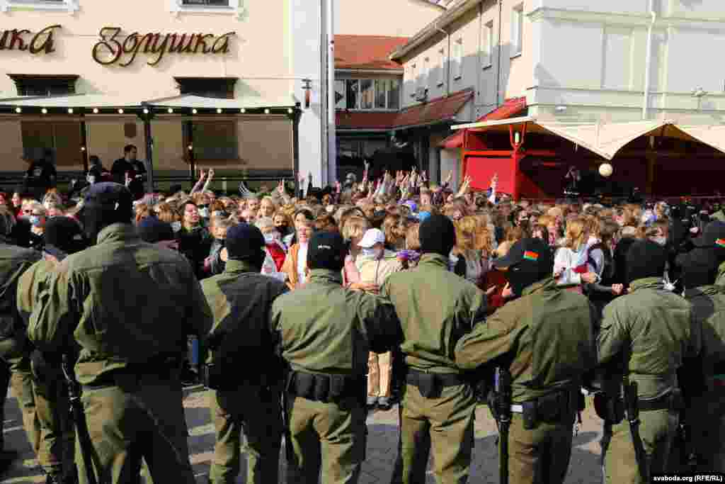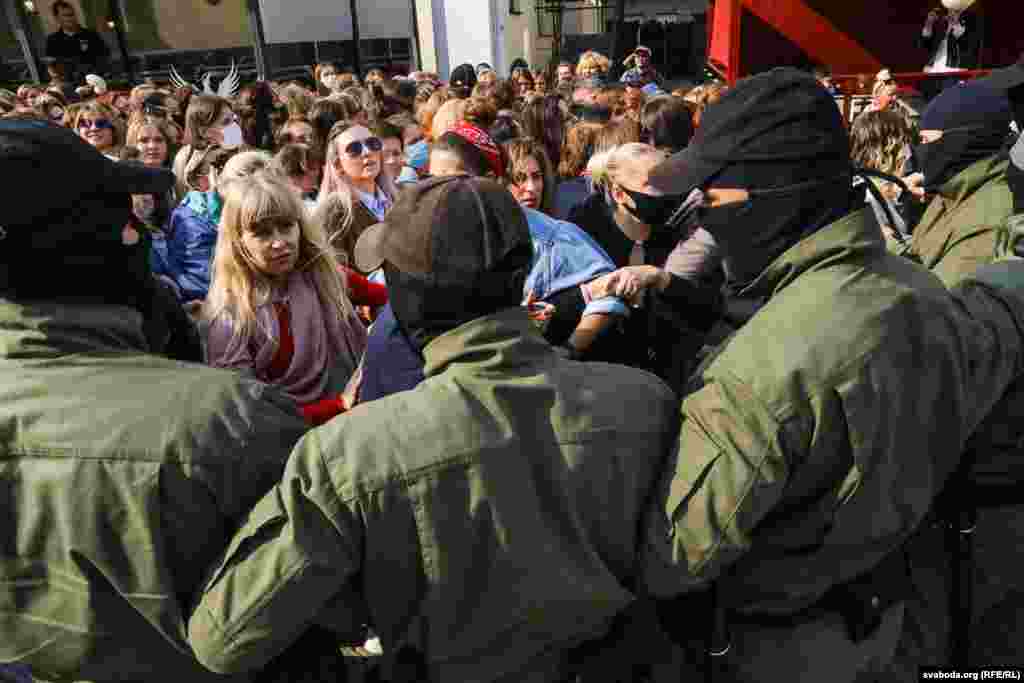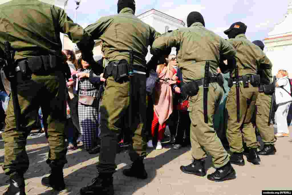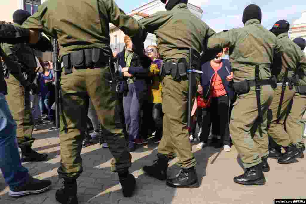 Прыкладна за 20 хвілінаў плошчу Свабоды амаль цалкам «зачысьцілі». Частка жанчын змагла ўцячы. Мяркуецца, што затрыманыя сотні жанчын. Сілавікі некаторы час працягвалі шукаць жанчын у дварах, журналістаў адціснулі з плошчы.