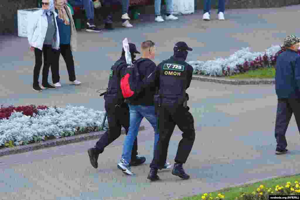 Адразу зьяўляюцца аўтазакі з АМАПам, які пачынае затрымліваць людзей