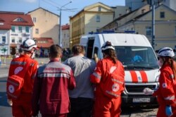 Двое мужчын, якіх несьлі ў аўтазак за рукі і за ногі, выглядалі так, нібыта страцілі прытомнасьць. Аднаго зь іх вырашылі не затрымліваць, а проста пакінулі на зямлі каля аўтазакаў. Падышлі мэдыкі з Чырвонага крыжа, потым яго забрала хуткая. На выгляд мужчыну было 35–40 гадоў. Потым ён ачуняў і пасьпеў сказаць, што ў яго здарыўся гіпэртанічны крыз.