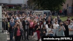 Сваякі затрыманых чакаюць пад Ленінскім РАУС.