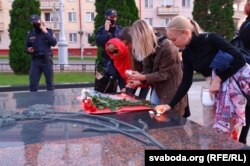 У атачэньні міліцыі шасьцёра дзяўчат у Гомлі ўсклалі кветкі на саракавы дзень пасьля сьмерці 25-гадовага Аляксандра Віхора.