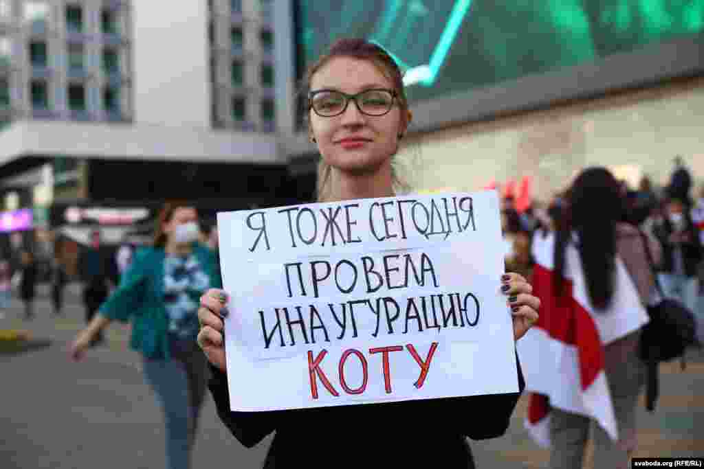 Сотні чалавек рушылі па праспэкце Пераможцаў у накірунку стэлы. Карона — папулярны аксэсуар