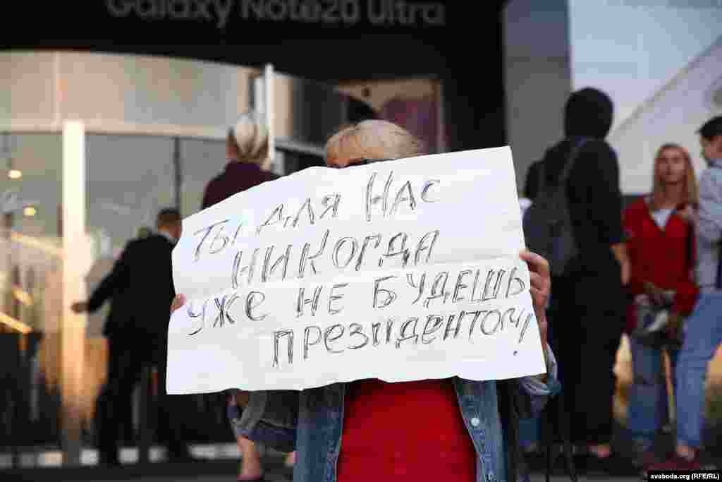 Некалькі дзясяткаў чалавек сабраліся з плякатамі каля гандлёвага цэнтру «Галерэя»