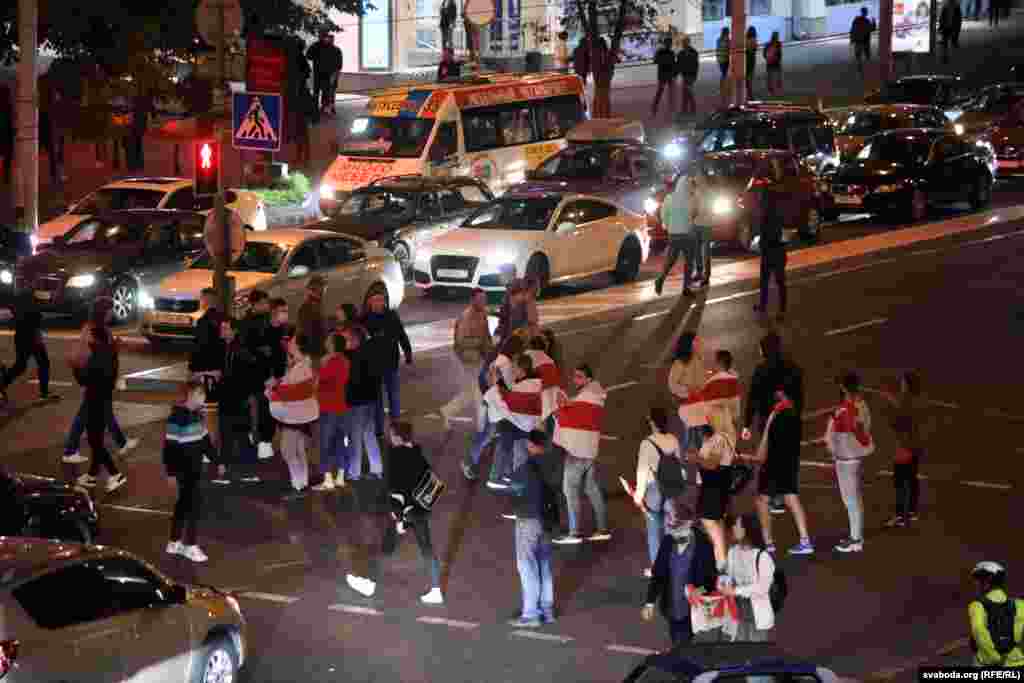 Увечары 23 верасьня на праспэкце Пераможцаў у Менску пачалі зьяўляцца арганізаваныя групы людзей