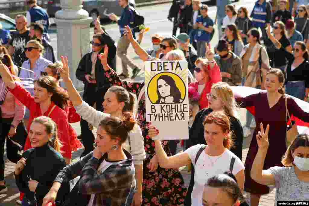 Жыхаркі Менску назвалі свой марш 26 верасьня «рэпэтыцыяй народнай інаўгурацыі» Сьвятланы Ціханоўскай. Сілавікі затрымалі некаторых удзельніц маршу.