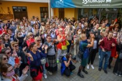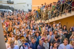 Гледачы запоўнілі дворык, а таксама сходы і тэрасы офіснага будынку. Артысты папрасілі іх не рабіць з сустрэчы палітычнай падзеі, не выгукваць лёзунгаў, не даставаць сьцягоў. Іх пачулі.
