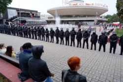 Некалькі чалавек затрымалі, астатнія перайшлі на бок цырку і там вадзілі карагод вакол фантану. Калі зьявіліся байцы ўнутраных войскаў, людзі сталі ў счэпку. Пачаліся брутальныя затрыманьні.
