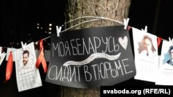 У Менску ва Ўруччы адбылася імправізаваная выстава «Мая Беларусь сядзіць у турме», прысьвечаная палітвязьням.
