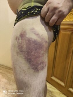 «Потым у ізалятары я ўбачыў, што ногі проста чорныя ўсе. Дручкамі білі, рукі выварочвалі; хто нагой, хто рукой — лупілі, лупілі. Мяне хацелі весьці босым, я прасіў хоць чаравікі абуць. Абражалі і білі ў твар», — кажа Арцём.