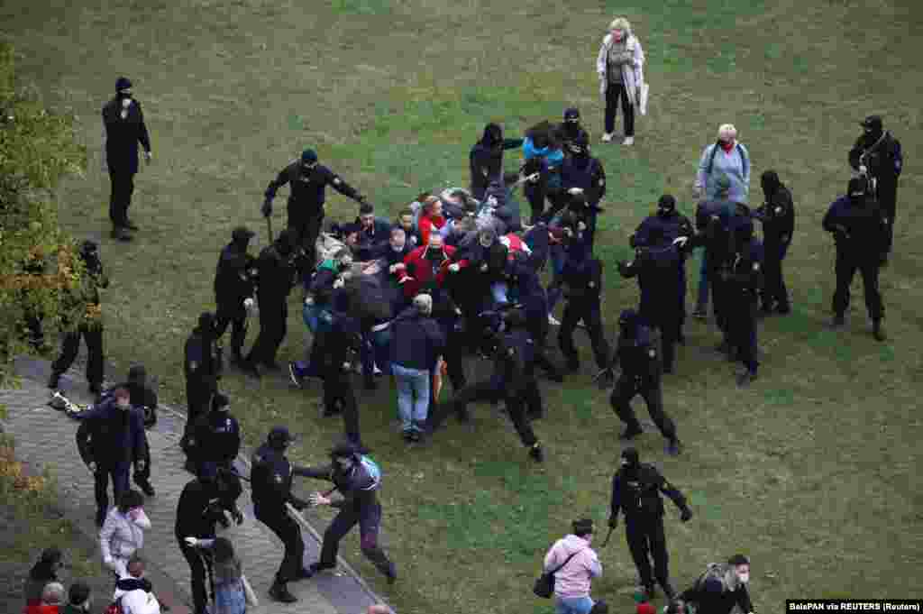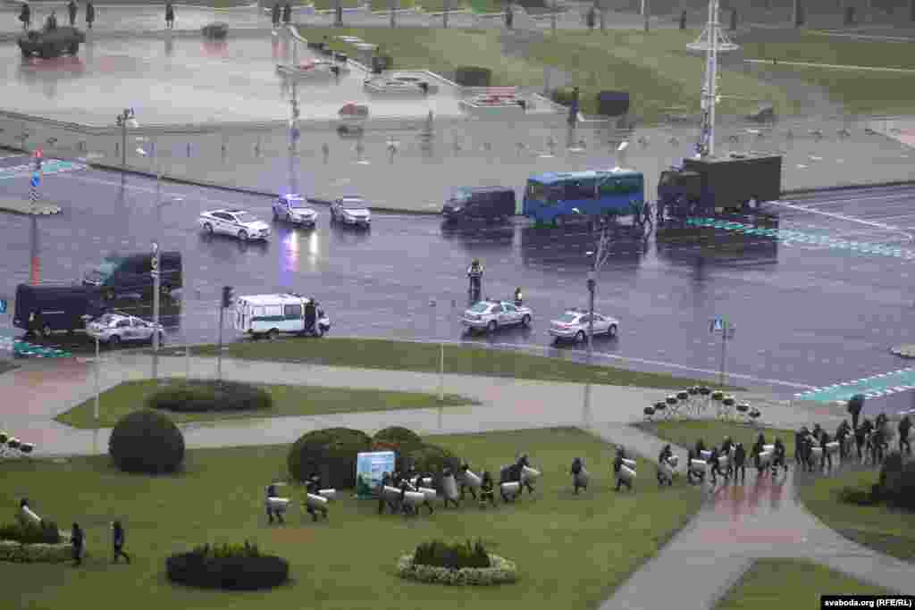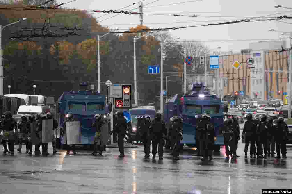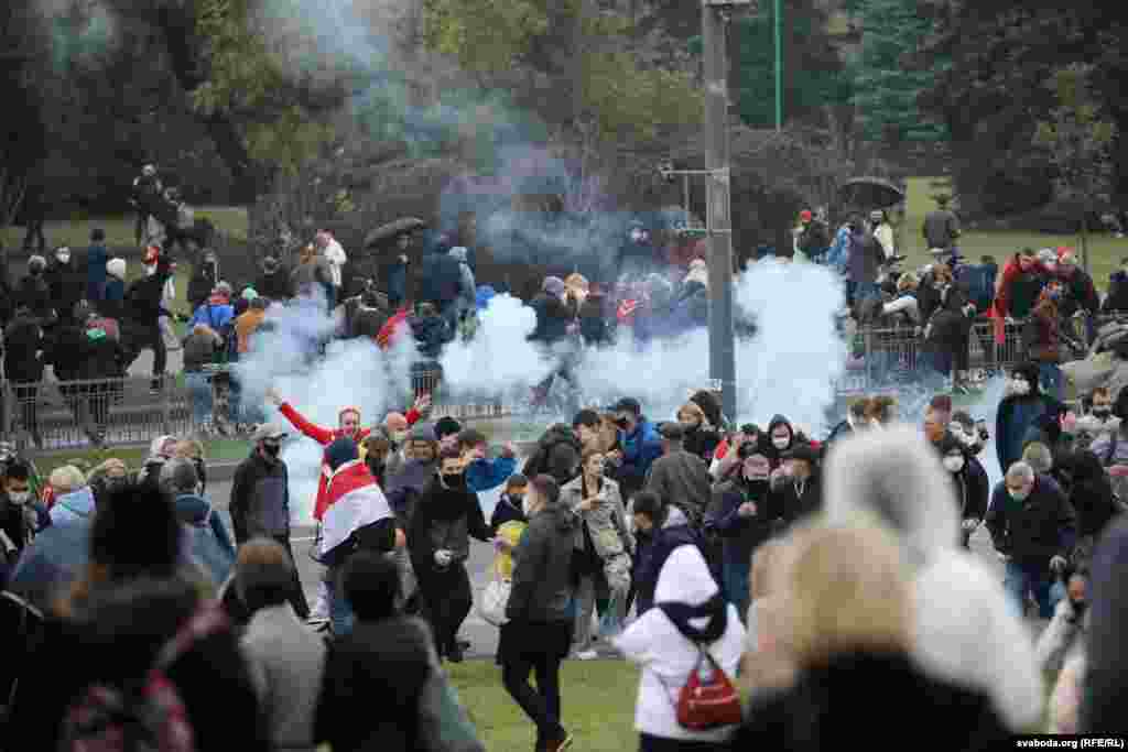 На праспэкце Пераможцаў, Нямізе, Раманаўскай слабадзе і Кальварыйскай актыўна задзейнічалі вадамёты — палівалі людзей аранжавай жыжай, разьбіваючы калёны дэманстрантаў
