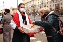 15.15 Галава калёны ўжо на плошчы Перамогі. Каля плошчы Перамогі моладзь частавала пэнсіянэраў печывам, дарыла кветкі.