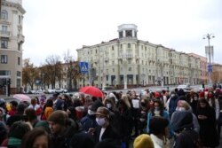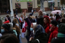Жаночы марш працягваецца. Дэманстранты дайшлі да Кастрычніцкай плошчы, скандуюць «Страйк!», «Пайшоў вон, ты і твой АМАП!».