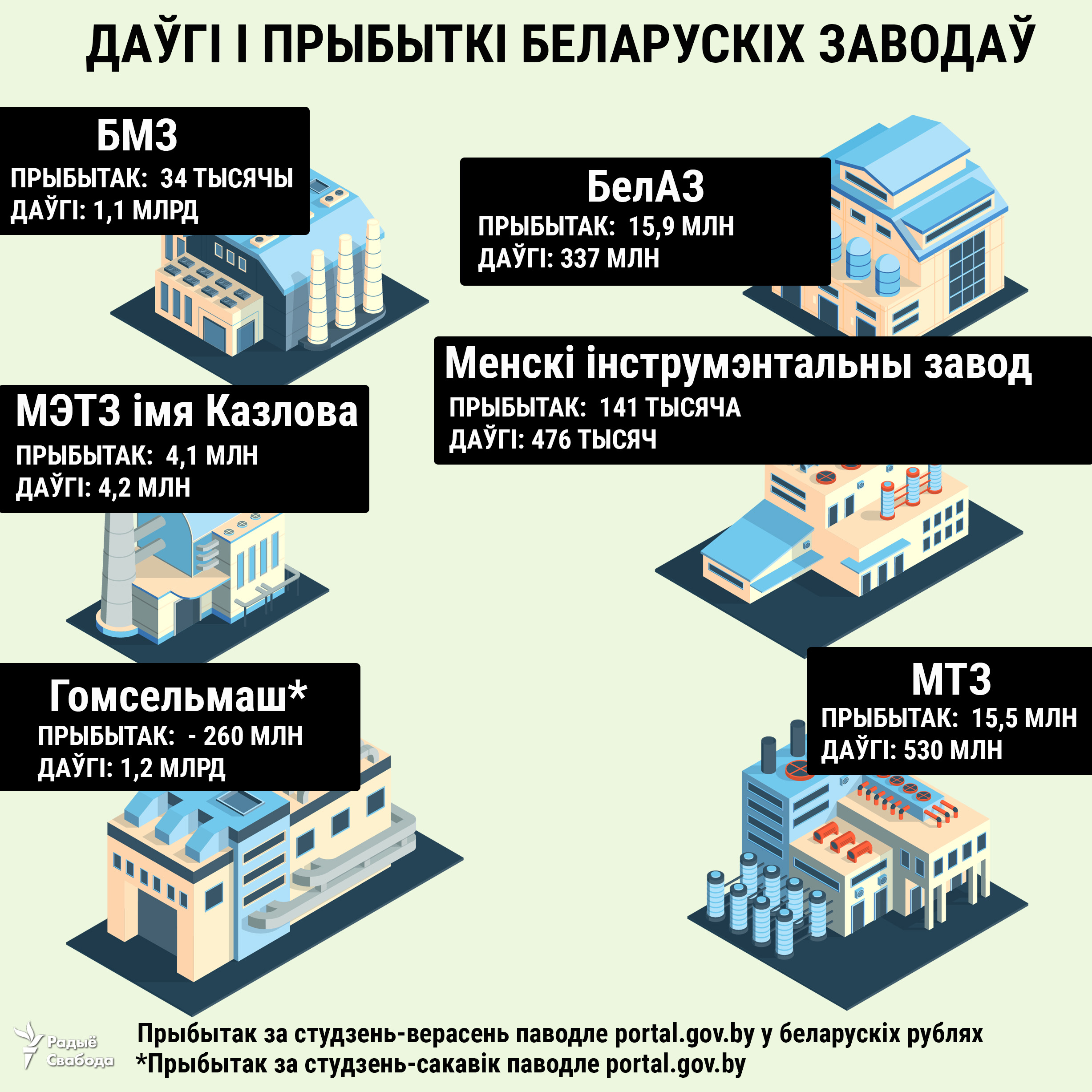 Колькі зарабілі прамысловыя гіганты за студзень-верасень і колькі яны вінныя па крэдытах. Адной карцінкай.