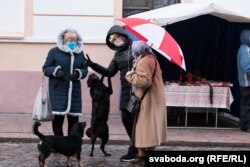 Некалькі пэнсіянэрак гулялі з БЧБ-парасонамі і ў такіх жа масках. Прынамсі адну зь іх затрымалі.